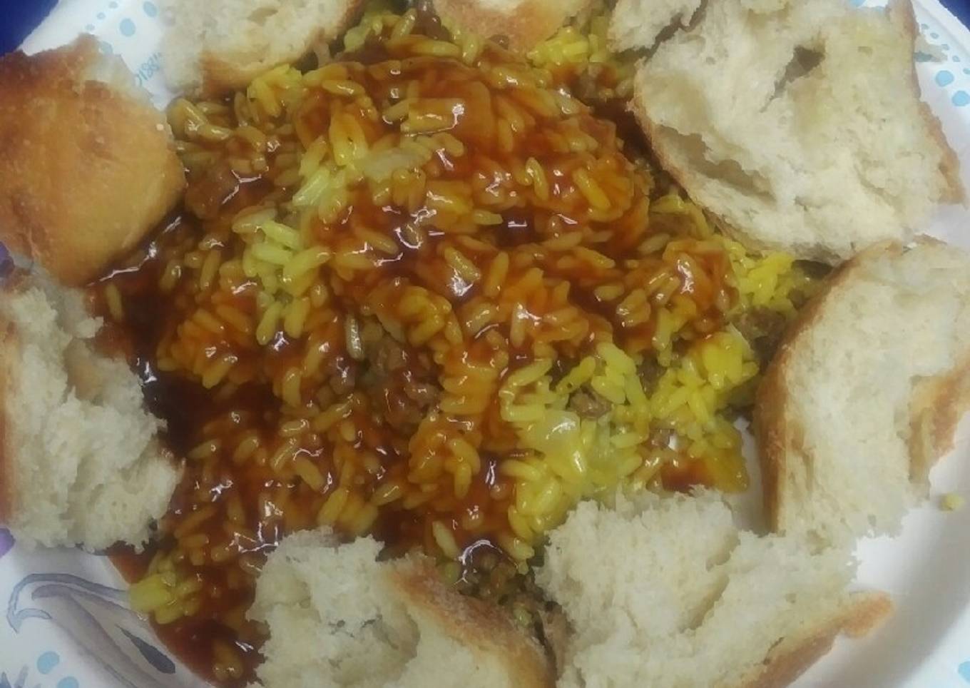 - Serve with bread in a ring around the rice. Add barbecue sauce. I hope you enjoy!!