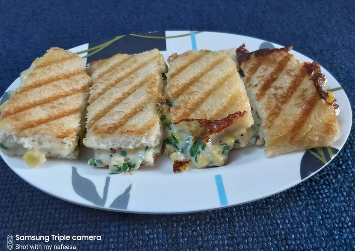 To begin with this particular recipe, we must first prepare a few components. You can cook Grilled spinach and corn sandwich using 12 ingredients and 4 steps. Here is how you cook that.