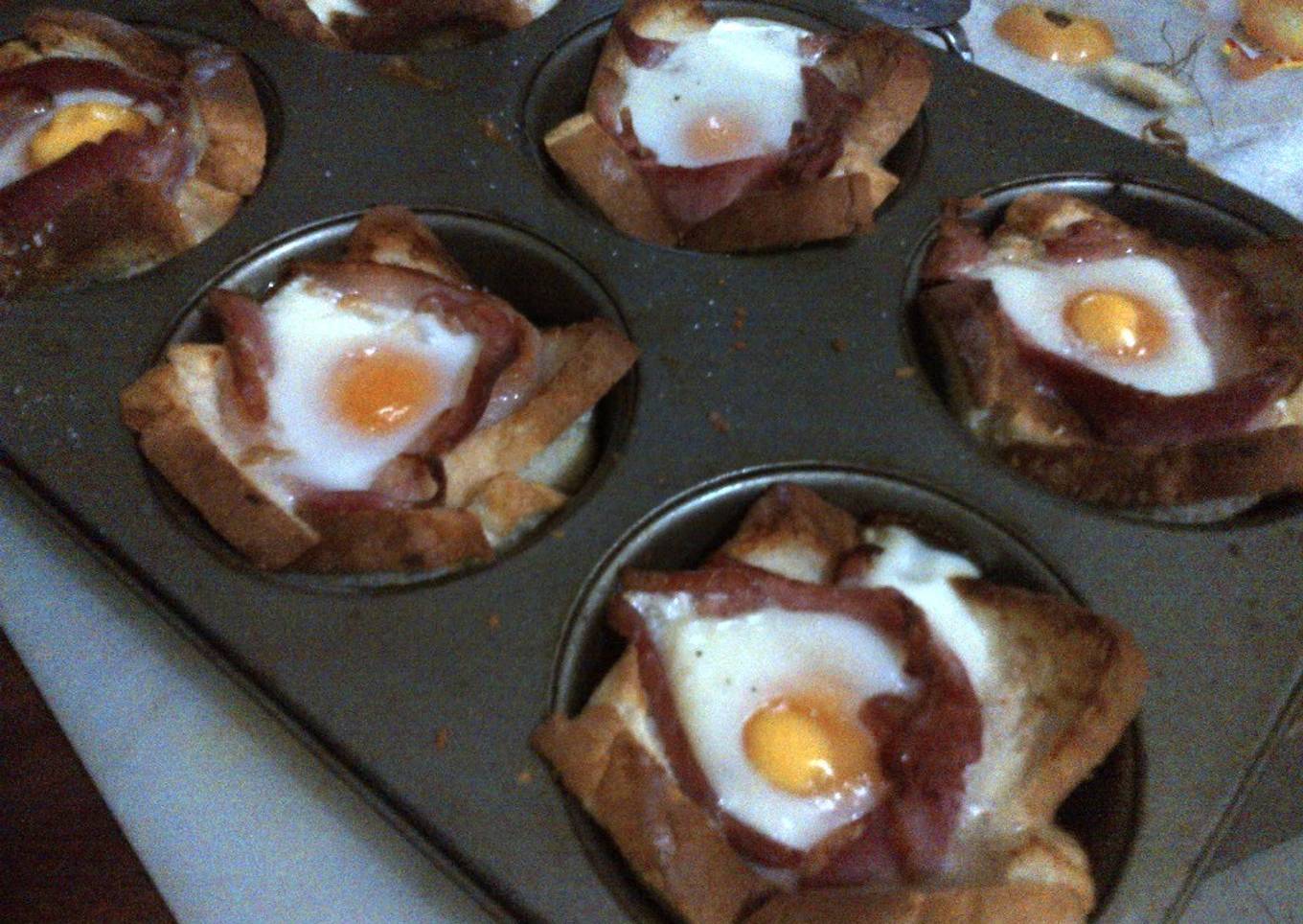 Easy breakfast baskets that I made for my dad on gathers day. He's a bit of a health freak and ditests anything cooked in oil esp. his eggs and bacon. He loved them and ate 3 servings to himself. This receipe can also have variations where ou can scramble the eggs making it an omlette adding baked beans, or tomatoes, onions and greens like spring onion. Very simple and oil free.